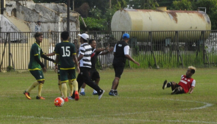 Aksi saling pukul lantaran kedua kesebelasan bermain keras sejak peluit tanda kick off dibunyikan oleh Wasit, Junaidi. Imbasnya, pertandingan harus dihentikan saat baru berjalan sekitar 2 menit.