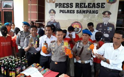 Selain tersangka, Polisi juga mengamankan sejumlah barang bukti diantaranya. Puluhan botol minuman keras berbagai jenis, kembang api berbahanya, senjata tajam, uang hasil judi togel dan ribuan pil koplo berikut ratusan plastik klip kosong.