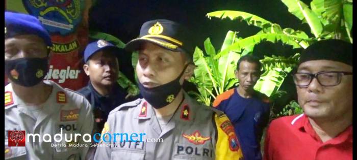Sementara itu, Wakapolres Bangkalan, Kompol Mukhammad Lutfi menyampaikan, “Baik rekan-rekan, kami bersama BPBD, Satpolairud dan juga beberapa instansi terkait lainnya, mulai tadi, sekitar 19.00 wib kita laksanakan pencarian, terhadap korban yang dinyatakan kemungkinan bunuh diri. Terjun ke dalam sungai dan saat ini masih kita upayakan pencarian. Mudah-mudahan bisa kita ketemukan malam ini. Namun demikian, kita kasih batas waktu 22.00 wib bilamana pencarian masih belum berhasil, Insyaallah besok pagi pukul 08.00 akan melakukan pencarian kembali.” Pungkas Wakapolres.