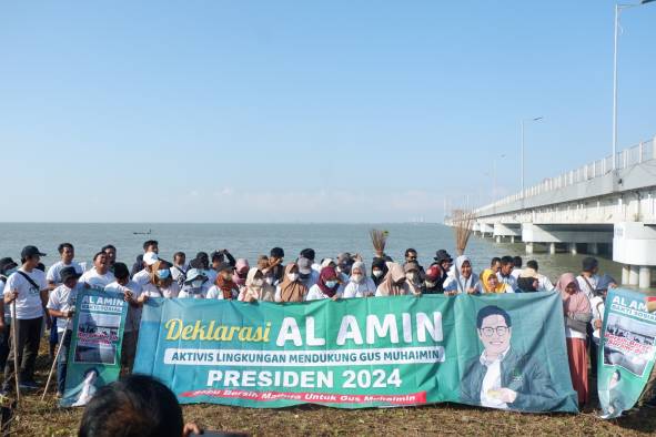 Tamtam, sapaan akrab pria asal Arosbaya tersebut juga menambahkan, bahwa selain bersih-bersih, komunitas AL-AMIN juga melakukan deklarasi dukungan Capres, juga semata-mata sebagai wujud supaya menjaga lingkungan.