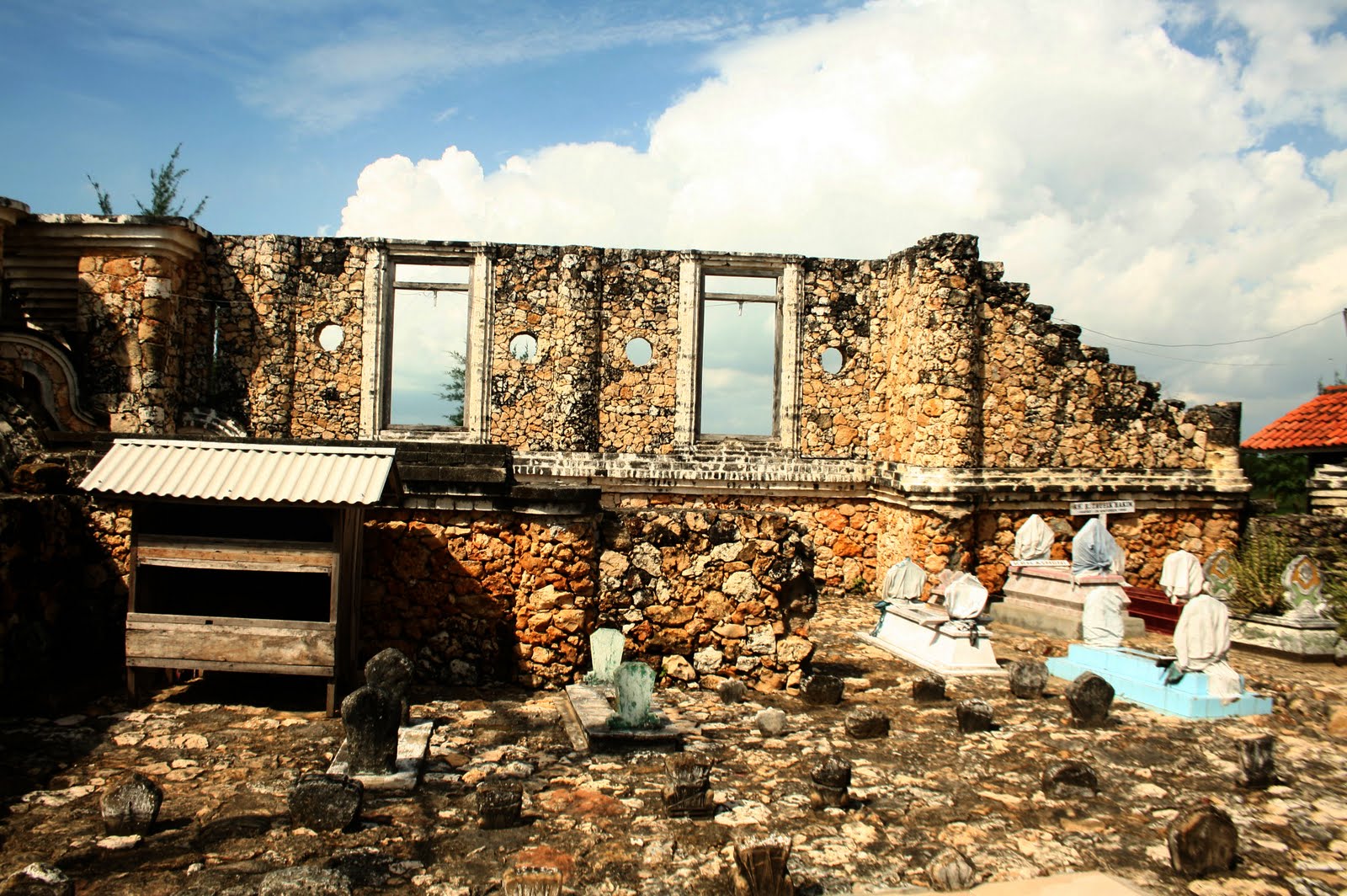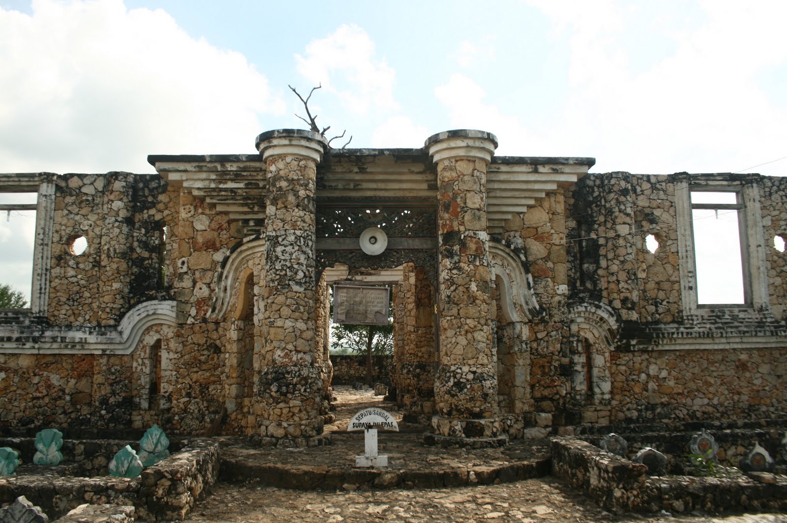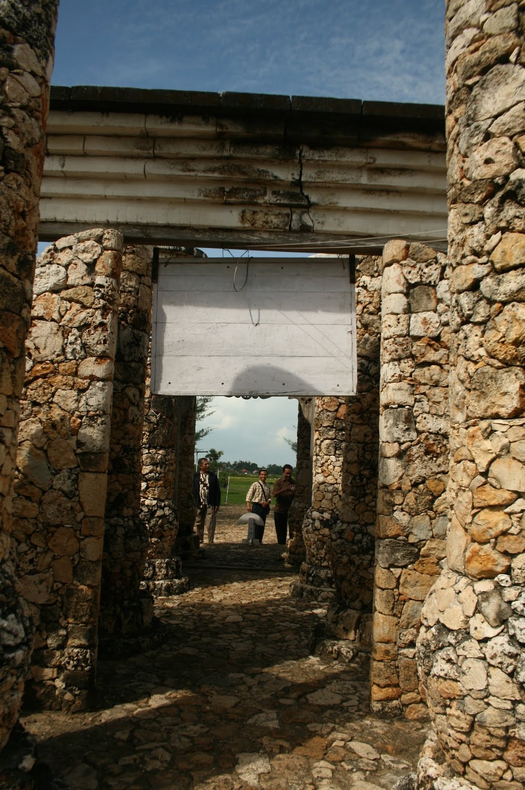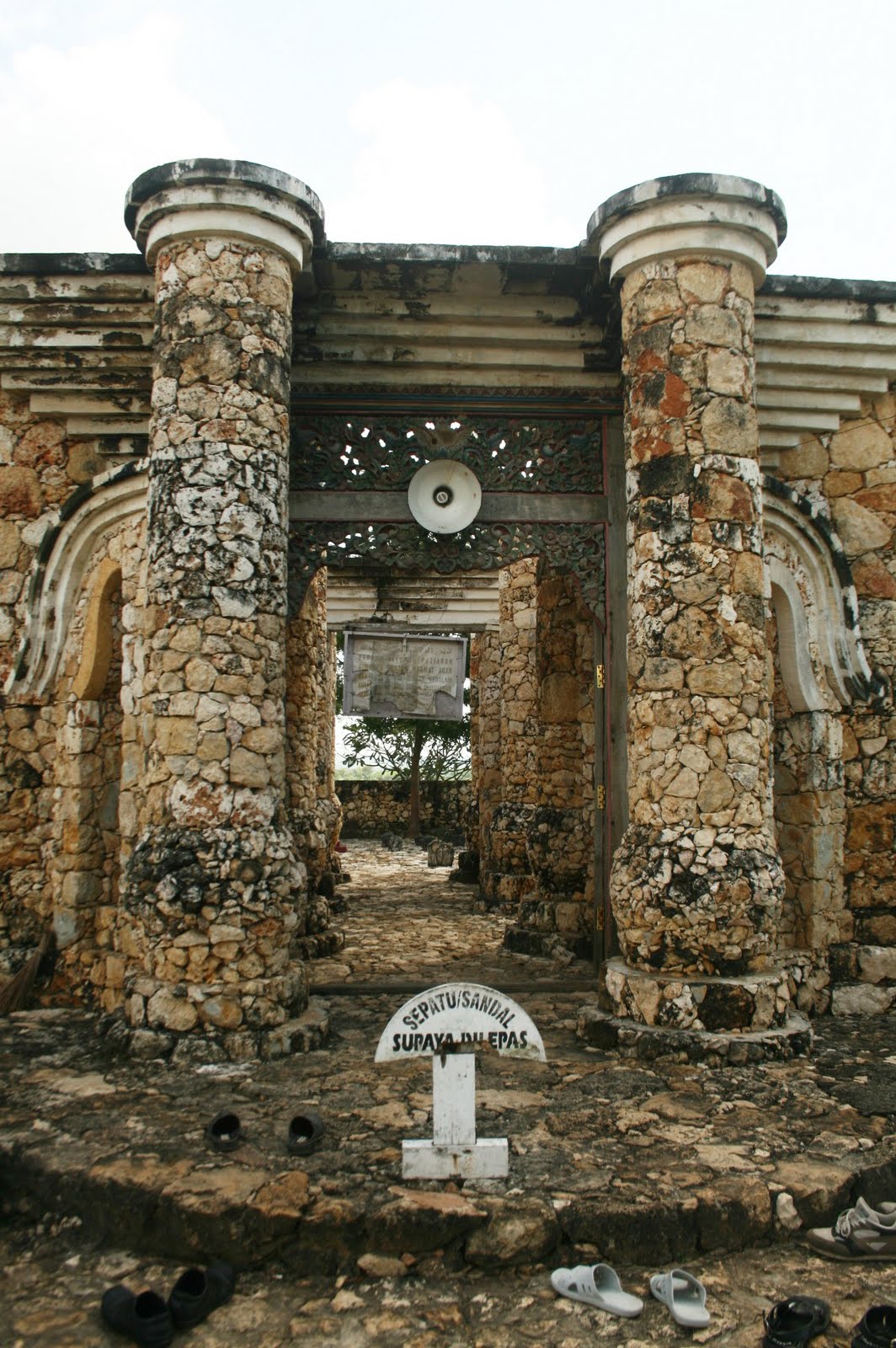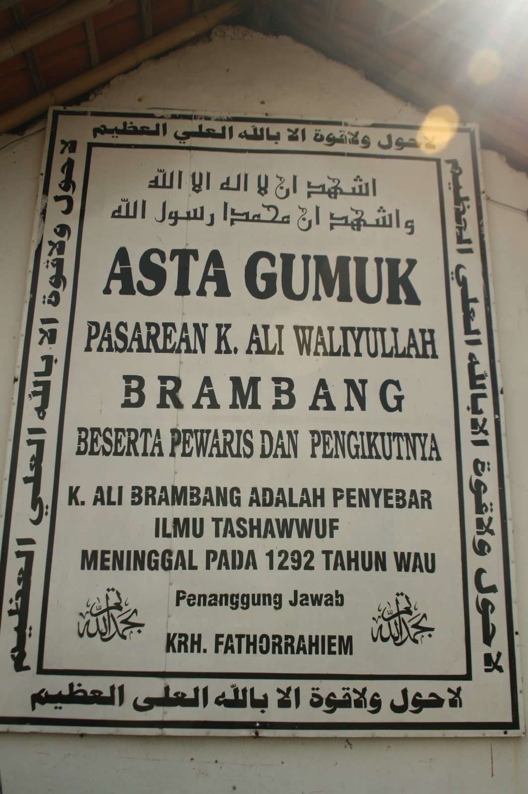 Tulisan ini berdiri di atas bangunan berbatu bata putih khas pulau Madura.