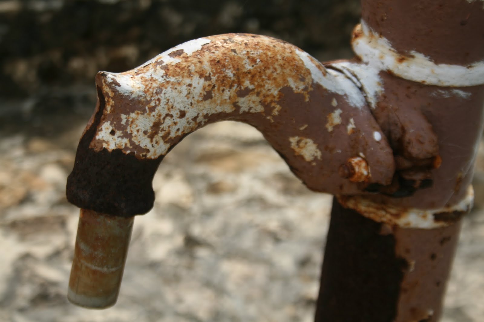 Oya di samping jalan utama ada sebuah pompa air yang sudah tua sekali. Tampaknya sudah tidak bisa digunakan.