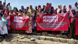 Para ibu nelayan turut serta dalam aksi ini dengan membentangkan banner bertuliskan “Laut untuk Anak Cucu Kami, Bukan untuk Asing!”