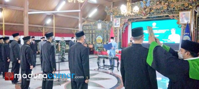 BANGKALAN, maduracorner.id,- Hasil seleksi yang dilaksanakan pemerintah kabupaten Bangkalan terkait jabatan eselon II yang telah dilaksanakan beberapa waktu lalu, akhirnya di lantik. Pelantikan pejabat struktural eselon II tersebut dilaksanakan di pendopo Agung Kabupaten Bangkalan, Jalan Letnan Abdullah No. 01 Bangkalan, Madura pada Selasa (22/02/2022) malam.