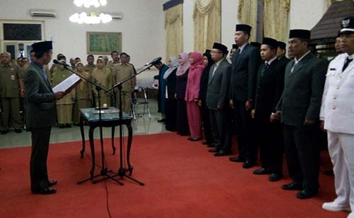 “Saya minta agar saudara benar-benar menjadi pejabat yang mampu bekerja secara profesional dan akuntabel sesuai dengan sumpah yang diucapkan,” pesan Syafii kepada para pejabat yang dilantik.