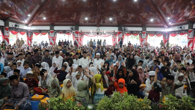 Ribuan anak yatim tersebut kemudian diberikan santunan berupa sejumlah uang dan sembako untuk memenuhi kebutuhannya.