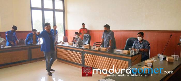 Bangkalan, maduracorner.id, Dengar pendapat (Hearing) yang dilaksanakan Komisi A DPRD Kabupaten Bangkalan terkait penyampaian aspirasi oleh mahasiswa PMII, dilaksanakan pada Rabu (23/02/2022). Hadir dalam rapat tersebut antara lain ketua komisi A DPRD Kabupaten Bangkalan beserta anggota, OPD terkait, 3 perusahaan perkapalan, tokoh masyarakat Kamal dan perwakilan mahasiswa PMII. Rapat sempat diwarnai protes oleh mahasiswa PMII dikarenakan pihak eksekutif (instansi terkait) meninggalkan rapat disertai oleh perwakilan dari 3 perusahaan yang di panggil dalam rapat tersebut