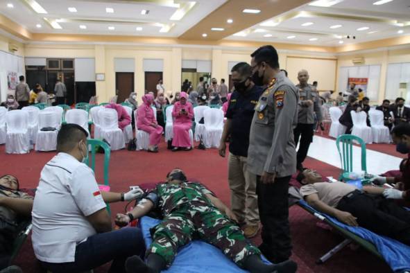 Selepas donor darah berlangsung, Kapolres Bangkalan AKBP Alith Alarino merupakan rangkaian bakti kesehatan untuk memperingati Puncak Hari Ulang Tahun Bhayangkara ke 76 yang jatuh pada 1 juli mendatang.