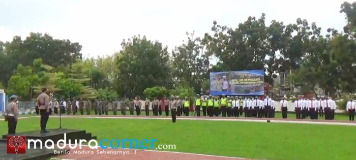 Bangkalan, maduracorner.id,- Menjelang perayaan hari raya idul fitri 1443 Hijriyah/tahun 2022, Polres Bangkalan menggelar Apel akbar Gelar pasukan dalam rangka operasi keselamatan Semeru tahun 2022 di halaman Mapolres Bangkalan, Jalan Soekarno-Hatta Bangkalan pada Selasa (01/03/2022).