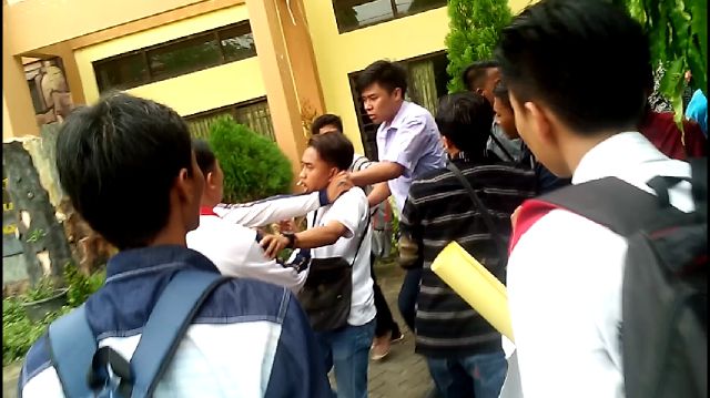 Saat mobil berplat B itu keluar dari kampus puluhan mahasiswa menghadang, sehingga para satpam dan Civitas akademi merespon dengan tindakan refresif, pihak keamanan dan Civitas akademi terus berusa untuk membubarkan mahasiswa hingga ada yang jatuh dan di cekik lehernya oleh pihak keamanan kampus.