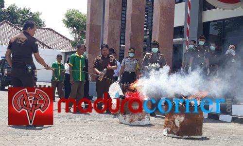 Pemusnahan barang bukti (BB) dilakukan di Halaman Kantor Kejaksaan Negeri (Kejari) Sumenep, disaksikan Wakapolres Kompol Sutarno, BNNK Sumenep dan Kasat Narkoba serta perwakilan BNNK setempat. Proses pemusnahan barang bukti ini setelah memiliki kekuatan hukum tetap dari pengadilan negeri (PN) Sumenep.