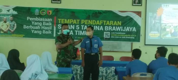 BANGKALAN, maduracorner.id,- Kodim 0829/Bangkalan melalui Staf Pers mengadakan kampanye kreatif penerimaan taruna baru SMAN 5 Taruna Brawijaya. Kampanye kreatif tersebut dilaksanakan di ruang Laboratorium IPA SMPN 1 Bangkalan, Jalan Letnan Ramli Bangkalan pada Rabu (09/02/2022). Sebelumnya di laksanakan pula di SMPN 2 Bangkalan dan SMP Keleyan Kecamatan Socah pada Selasa (08/02/2022).
