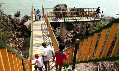 “Kami sengaja datang ke Pantai Jumiang untuk melihat keindahan pantai dengan jembatan warna warni yang terhubung langsung ke bibir pantai serta pemandanagan laut dan batu karang yang indah, “kata salah seorang pengunjung, asal Sumenep, Rizal, (Selasa 21/11/2018).