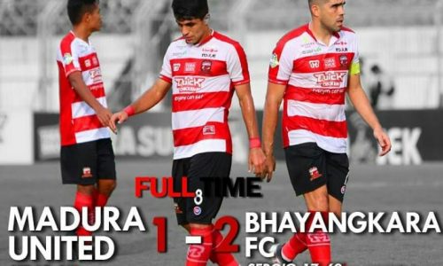 BANGKALAN, maduracorner.id- Madura United gagal meraih poin penuh setelah dikalahkan Bhayangkara FC dengan skor 1-2