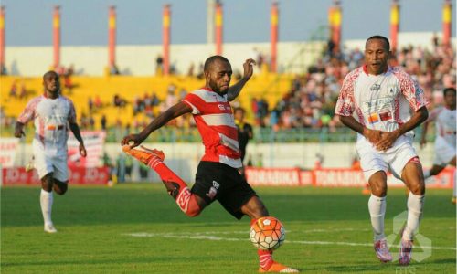 Madura United menang tipis saat bertandang ke markas Peraipura Jayapura JAYAPURA,maduracorner.id-Madura United berhasil menundukkan Persipura Jayapura di pekan ke-27 Liga 1 2017, Minggu (1/10/2017). Pertandingan yang berlangsung di Stadion Mandala, Jayapura itu berakhir dengan skor 1-0. Kemenangan prestisius ini, mendongkrak Madura United menduduki posisi ke tiga di klasemen sementara denga perolehan 51 poin. Sedangkan Persipura tertahan di posisi kelima dengan 47 poin. Sejak kick off babak pertama dimulai, kedua tim menampilkan permainan menyerang. Jual beli serangan diperagakan para pemain Persipura dan Madura United. Rupanya dewi fortuna menaungi tim Laskar Sapeh Kerrap. Pada menit ke-29 sepakan Dane Milovanovic merobek jala gawang tuan rumah. Skorpun berubah menjadi 1-0. Tertinggal satu gol, Persipura mencoba bangkit. Lini pertahanan Madura United mendapat tekanan dan digempur habis-habisan. Namun, tak satupun serangan tersebut berbuah gol. Pada babak kedua, tim Mutiara Hitam berupaya mengejar ketinggalan. Tekanan demi tekanan terus dilancarkan skuat asuhan Wanderley Junior. Tak berhasil menciptakan gol membuat pemain Persipura frustasi. Para pemain Madura United begitu solid menjaga pertahanan. Hingga babak kedua berakhir, skor tetap 1-0 untuk kemenangan Madura United.(*) Penulis: Heriyanto Ahmad Editor: Achmad