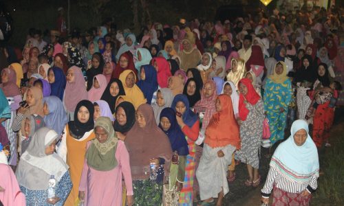 BANGKALAN, maduracorner.id- Puluhan ribu warga dari empat kecamatan membaca shalawat burdah dengan cara keliling Kecamatan Arosbaya, dalam rangka memperingati Isra’ Mi’raj dan menyambut Bulan Suci Ramadhan 1439 H, Minggu (8/4/2018) malam.