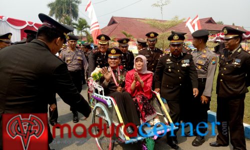 Mereka juga diberi penghargaan dalam upacara pelepasan purna bhakti dalam rangka Hari Ulang Tahun (HUT) ke-72 Bhayangkara di Mapolres Bangkalan, Selasa (11/7/2018).