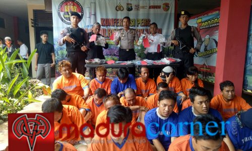 “Tersangka sebanyak 21 orang ini, merupakan hasil penggerebakan di Kecamatan Socah, Sepulu dan Tanjung Bumi,” jelas Wakpolres Bangkalan, Kompol Imam Pauji, Senin (13/8/2018).
