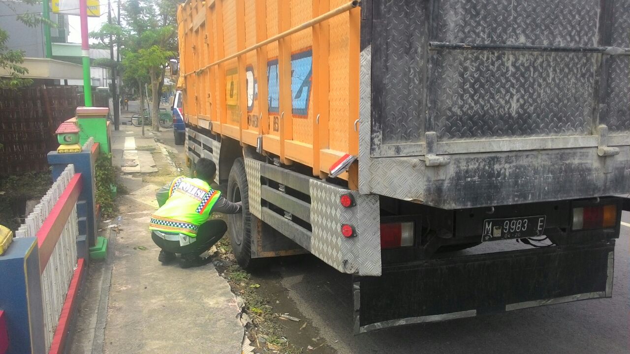 Polisi Gembosi Truk yang Parkir di Pinggir Jalan