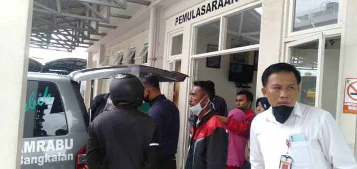 Mengetahui peristiwa itu, pihak kepolisian ngevakuasi jasad korban dengan menggunakan mobil ambulance ke RSUD Syamrabu Bangkalan untuk divisum dan diotopsi.