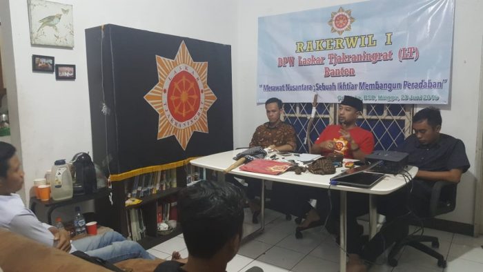 Tangsel, maduracorner.id – Rakerwil I DPW Laskar Tjakraningrat Banten digelar di BSD, Kota Tangerang Selatan, yang dihadiri oleh M. Andree Tj sebagai Pendiri & Ketua Dewan Pengawas DPP laskar Tjakraningrat dan Julia, Dewan Kehormatan LT Banten, Minggu (23/06/2019),