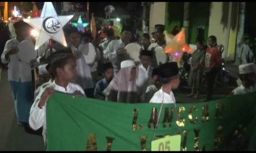 SUMENEP, maduracorner.id-Ratusan santri dari berbagai Musholla, Langgar dan Madrasah Diniyah di Kabupaten Sumenep, melakukan pawai lampion keliling kota setempat. Pawai lampion ini sebagai ungkapan kegembiraan atas kelahiran nabi muhammad SAW. Para santri ini membawa berbagai bentuk lampion, mulai miniatur bintang, bulan hingga berbentuk perahu.