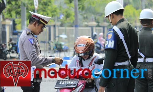 BANGKALAN, maduracorner.id- Satuan Lalu Lintas (Satlantas) Polres Bangkalan, menggelar razia kendaraan roda dua, dan roda empat dalam rangka Operasi Zebra Semeru 2018, di Alun-alun Kota Bangkalan, Senin (12/11/2018).