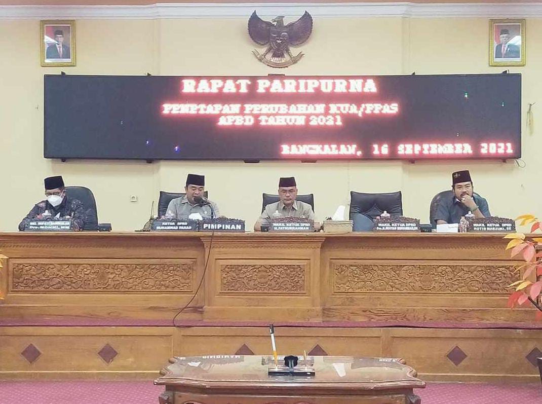 Bangkalan, maduracorner.id, DPRD Bangkalan menggelar Rapat Paripurna penetapan Kebijakan Umum Anggaran dan Prioritas Plafon Anggaran Sementara (KUA-PPAS) Rancangan Perubahan Anggaran Keuangan (PAK) APBD 2021.