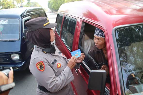 Satu persatu sopir angkot yang melintas di depan Mapolres Bangkalan, diberhentikan dan diberikan voucher belanja senilai lima puluh ribu rupiah dan paket sembako, setidaknya ada puluhan voucher belanja dan sembako yang dibagikan kepada para sopir angkot.