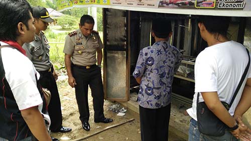 Selain pembakaran konter dan warung, kaca mushalla yang berjarak 100 meter dari konter dilempar orang tak dikenal menggunakan batu bata putih hingga pecah. Kuat dugaan pembakaran dan pengrusakan tersebut akibat permasalahan politik desa.