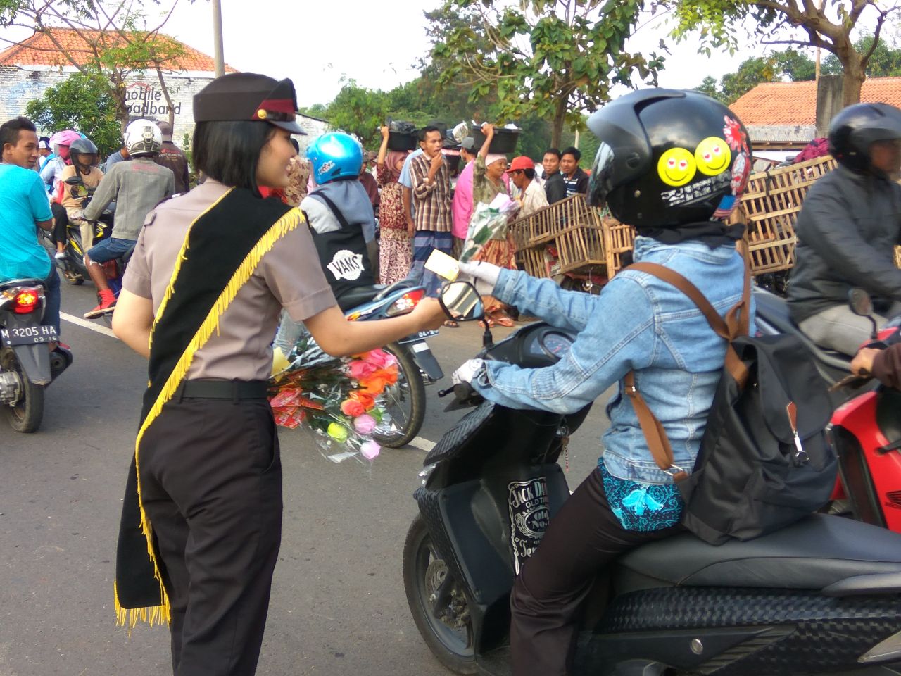 Dalam rangka memperingati HUT Polwan ke-68 yang jatuh pada 1 September 2016, para polwan catik tersebut tidak hanya membagikan bunga saja. Namun, disertai dengan penyampaian pesan moral untuk tertib berlalu lintas.