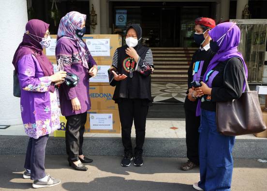 Bantuan masker itu diserahkan langsung oleh Dyah yang didampingi oleh Ketua Bidang V Pengabdian Masyarakat dan Tanggap Bencana, Apsilangga, Fatchul Munir. Bantuan itu diterima langsung oleh Wali Kota Surabaya Tri Rismaharini di halaman Balai Kota Surabaya.