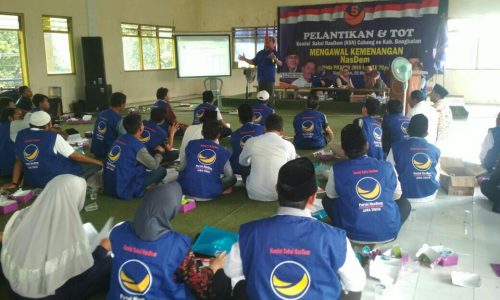 BANGKALAN, maduracorner.id-DPD Partai NasDem Bangkalan menggelar pelantikan dan Training of Trainer (TOT) Komisi Saksi NasDem (KSN), untuk mengawal kemenangan Pemilihan Kepala Daerah (Pilkada) 2018 dan Pemilihan Umum (Pemilu) 2019, Rabu (9/5/2018).
