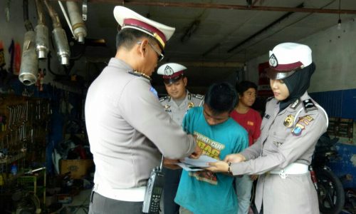 BANGKALAN, maduracorner.id – Satuan Lalu Lintas (Satlantas) Polres Bangkalan, mendatangi sejumlah bengkel sepeda motor. Kedatangan polisi berselempang putih ini, untuk memberikan sosialisasi larangan melayani pemasangan knalpot brong, Rabu (6/12/2017).