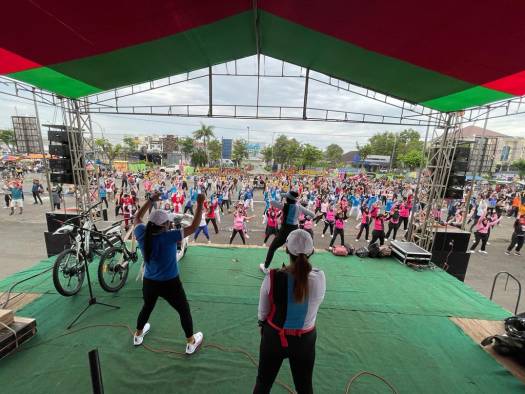 Kemudian juga digelar kegiatan jalan- jalan sehat dan senam berhadiah di halaman Stadion Gelora Bangkalan, Minggu, (12/02/23). Hadiah puluhan Doorprize yang disediakan antara lain kendaraan sepeda listrik, sepeda gunung dan kulkas.