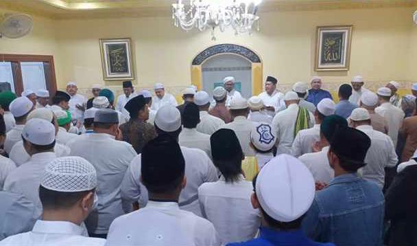 Caption: Terlihat para habaib, Ulama dan Umara’ bersholawat dalam acara Haul Akbar Habib Idrus Bin Husein Ba’agil.