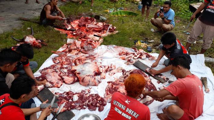 Usai pelatihan dilajutkan penutupan dengan penanggalan tanda perserta latihan oleh Kasubdisbintahwil Letkol Laut (KH) Gusrial mewakili Kadispotmaral dengan pemberian sertifkat, sembako dan uang pembinaan bagi para perserta latihan. (Pen).