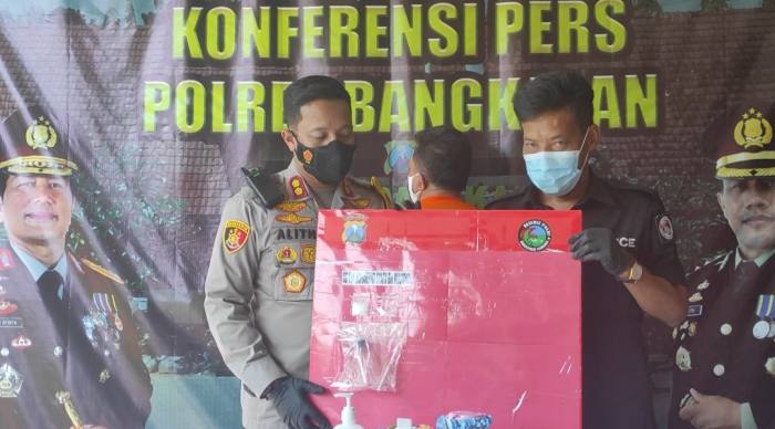 Bangkalan, maduracorner.id, Seorang pengedar barang haram narkoba di Kabupaten Bangkalan, Madura, Jawa Timur diringkus Satresnarkoba Polres Bangkalan, Jumat, 16 Juli 2021 lalu. Hal itu diungkap Kapolres Bangkalan AKBP Alith Alarino saat menggelar Konferensi Pers di Mapolres setempat, Kamis, (29/07/21).
